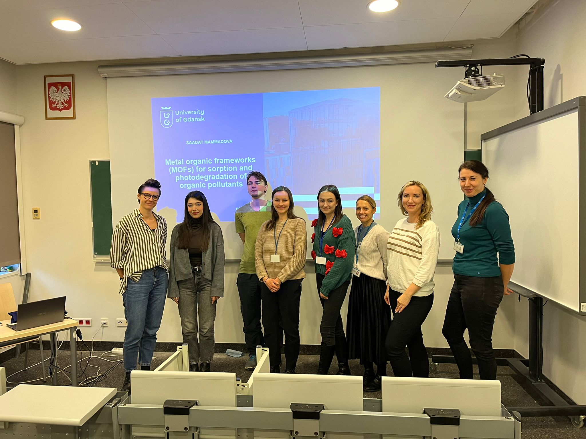 Between 1 October and 12 December 2025, Saadat Mammadova, a student from Riga Technical University, completed a research internship at the Department of Environmental Technology under the Erasmus+ programme. During her stay, under the supervision of Dr Aleksandra PieczyĆska, she conducted research on the synthesis of MOFs and their application for the removal of organic pollutants through sorption and photocatalysis.